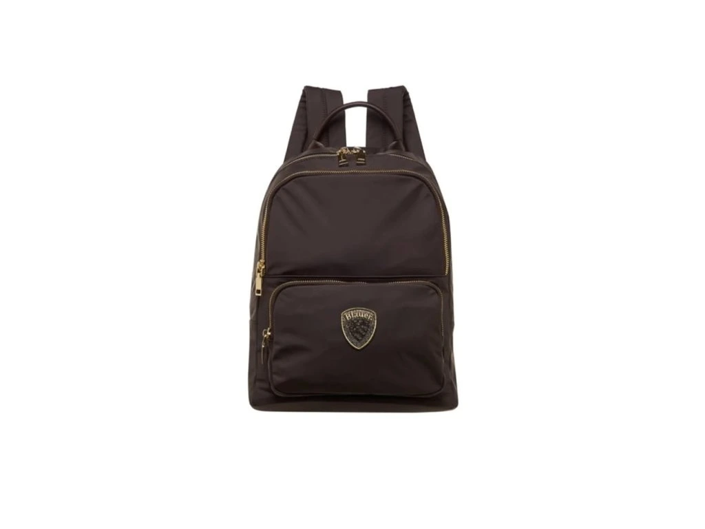 Detaily: rozměry 33 cm na 25 cm, na 14 cm, černý batoh se zapínáním na zip, ve předu má dvě kapsy se zapínáním na zip, uvnitř má kapsu na zip, ve předu má zlaté logo BLAUER vykládané kamínky od SWAROVSKI, batoh má dva polstrované popruhy s regulací, horní ucho je černé