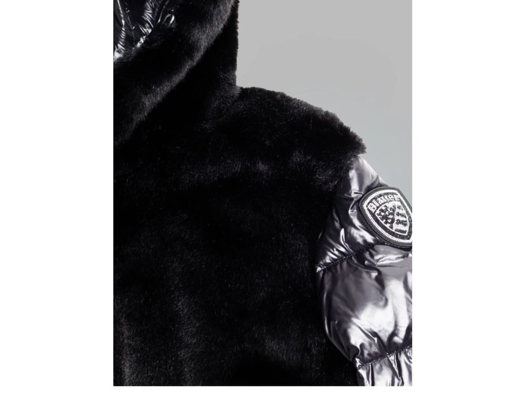 Detaily: designová bunda s kapucí, která nelze odepnout, umělá kožešina na kapuci a na přední části, dvě vnitřní kapsy na suchý zip a dvě vnější kapsy mají zapínání na cvok, centrální zapínání je na dvoucestný zip, odepínací logo Blauer na levém rukávu zdobené kamínky od SWAROVSKI, bunda je designově prošívaná, velmi příjemný materiál, bunda je velmi lehká a teplá