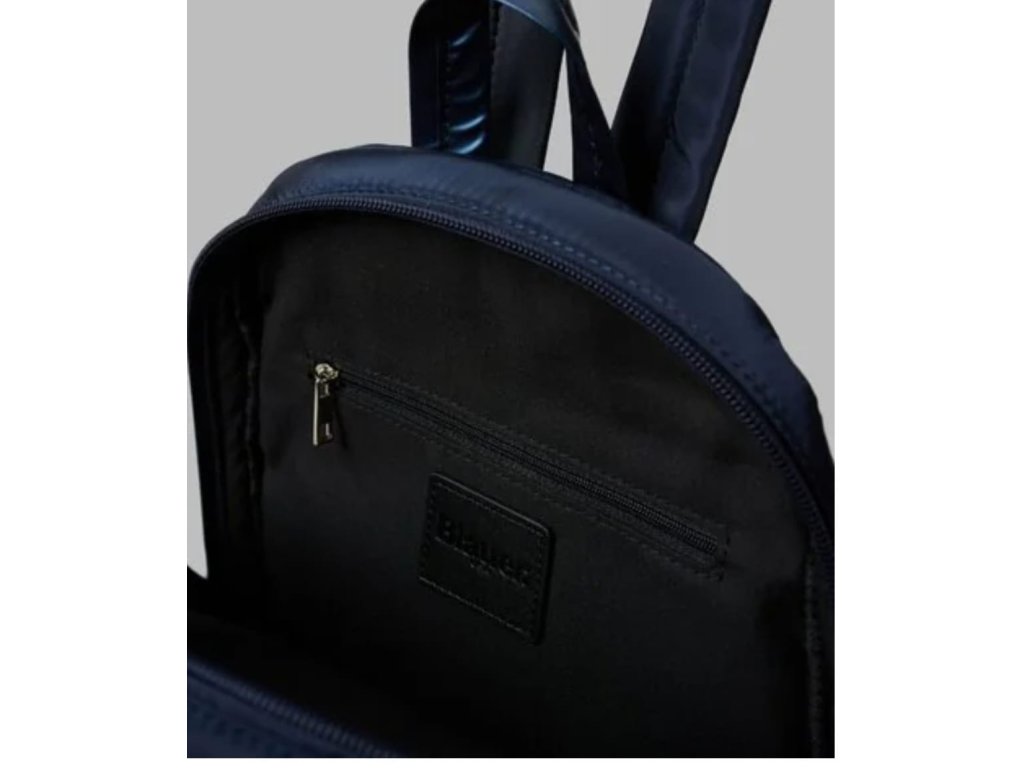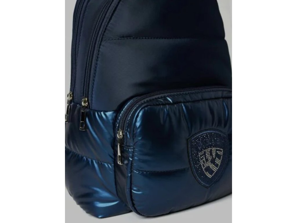 Detaily: rozměry 33 cm na 25 cm, na 15 cm, designový batoh se zapínáním na zip, ve předu má dvě kapsy se zapínáním na zip, uvnitř má malou kapsu na zip, ve předu má vyšité, černé logo BLAUER vykládané kamínky od SWAROVSKI, batoh má dva polstrované popruhy, horní ucho je modré