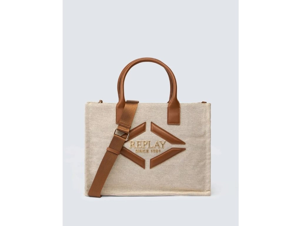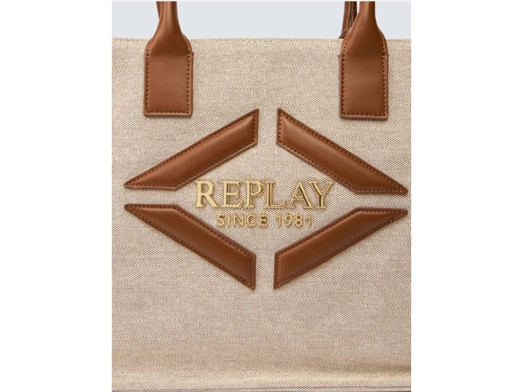 Detaily: dámská kabelka je látková, uši jsou z eko kůže, jedna hlavní kapsa je uzavíratelná na zlatý zip, na přední straně je zlaté logo REPLAY, řemínek přes rameno má regulaci až do 130 cm, řemínek je látkový v hnědé barvě - šíře je 3,5 cm, uvnitř je jedna kapsa na zip a jedna malá kapsička