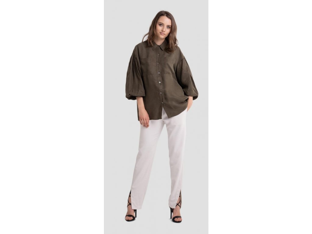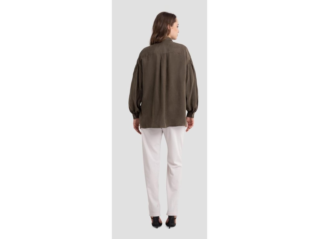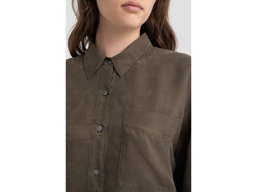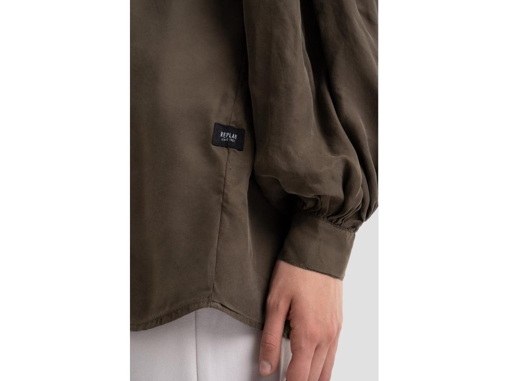 Detaily: designová dámská, košile s límcem a dlouhým nabíraným rukávem, celo propínací na knoflíky, na hrudi jsou kapsy, na levém boku je černý label s bílým logem REPLAY, velmi příjemný materiál