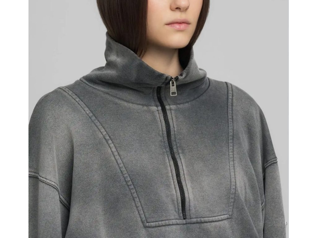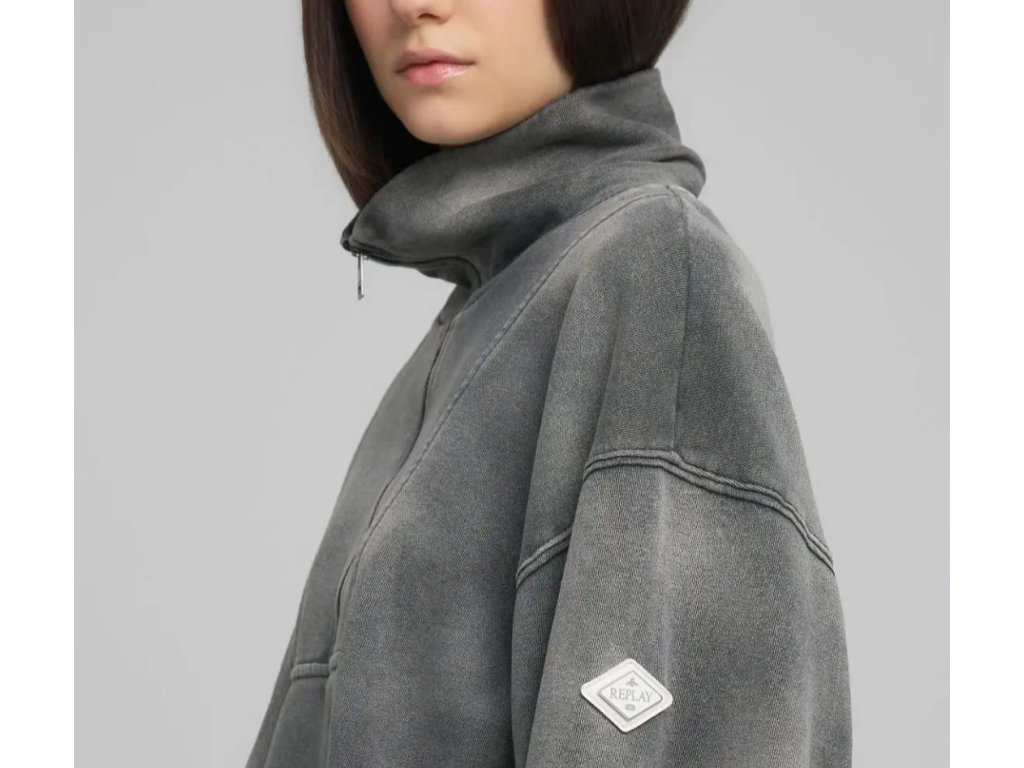 Detaily: klasická mikina přes hlavu, na levém rukávu je bílý label se stříbrným logem REPLAY, spodní okraj a konec rukávů je stažený gumičkou, 1/2 je propínací zipem do stojáku, velmi příjemný materiál