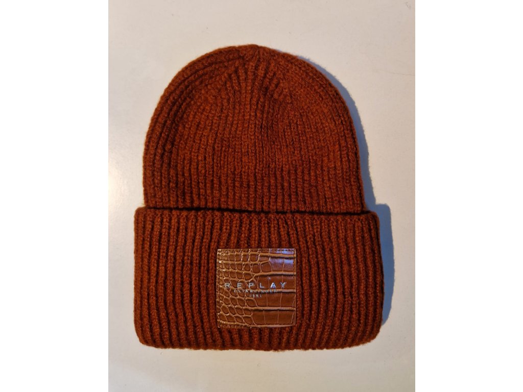Detaily: klasická, dámská čepice, ve předu, na lemu je hnědý, lesklý štítek v provedení - krokodýl, se stříbrným logem REPLAY, velmi příjemný a teplý materiál