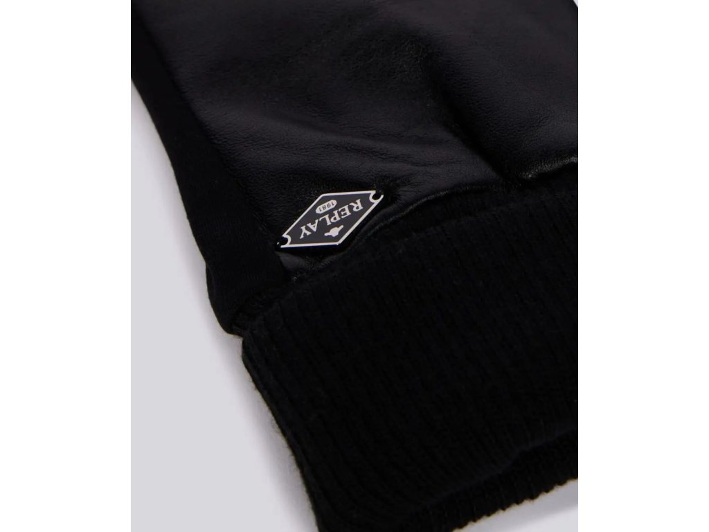 Detaily: designové, kožené rukavice s nápletem, na levé rukavici je nerezové logo REPLAY s černým podkladem