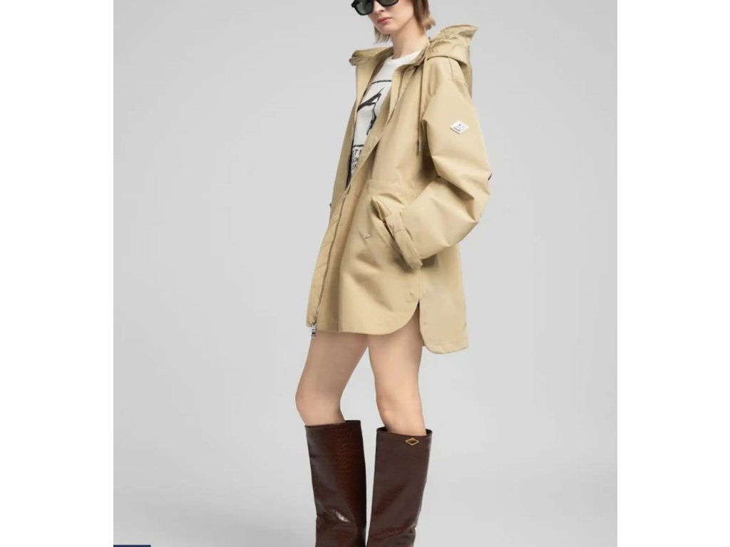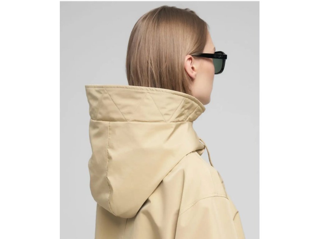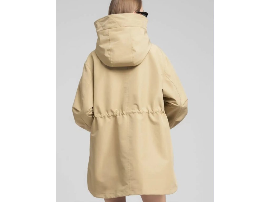 Detaily: kabát má velkou kapuci, která nelze odepnout a má regulaci šňůrkami, na levém rukávu je bílý label se stříbrným logem REPLAY, dvě vnější kapsy mají zapínání na nerezový cvok s vyraženým logem REPLAY, centrální zapínání na dvoucestný nerezový zip, uvnitř kabátu je jedna kapsa, na spodním okraji jsou dva rozparky, v pase je regulace tkaničkou, kabát je bez podšívky, vhodný na podzim a jaro