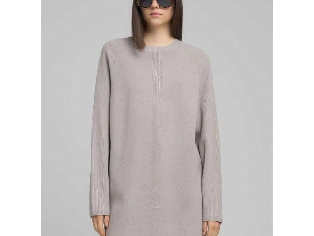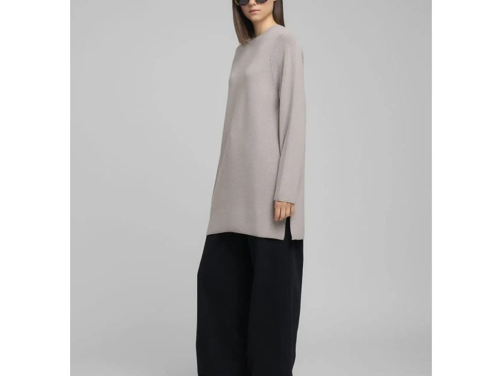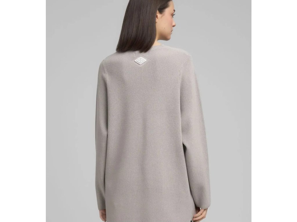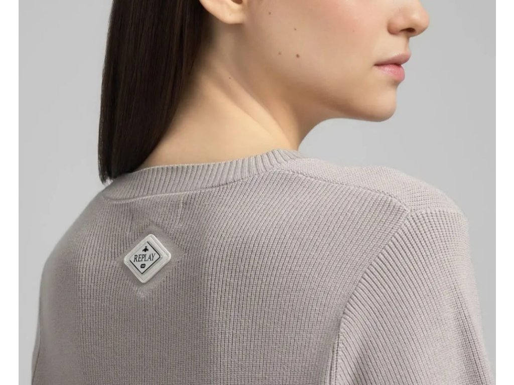 Detaily: dámský, šedý svetr s dlouhým rukávem, který je dlouhý 83 cm, na zádech za krkem je bílý label se stříbrným logem REPLAY, svetr má po stranách dva rozparky na spodním okraji, velmi příjemný materiál