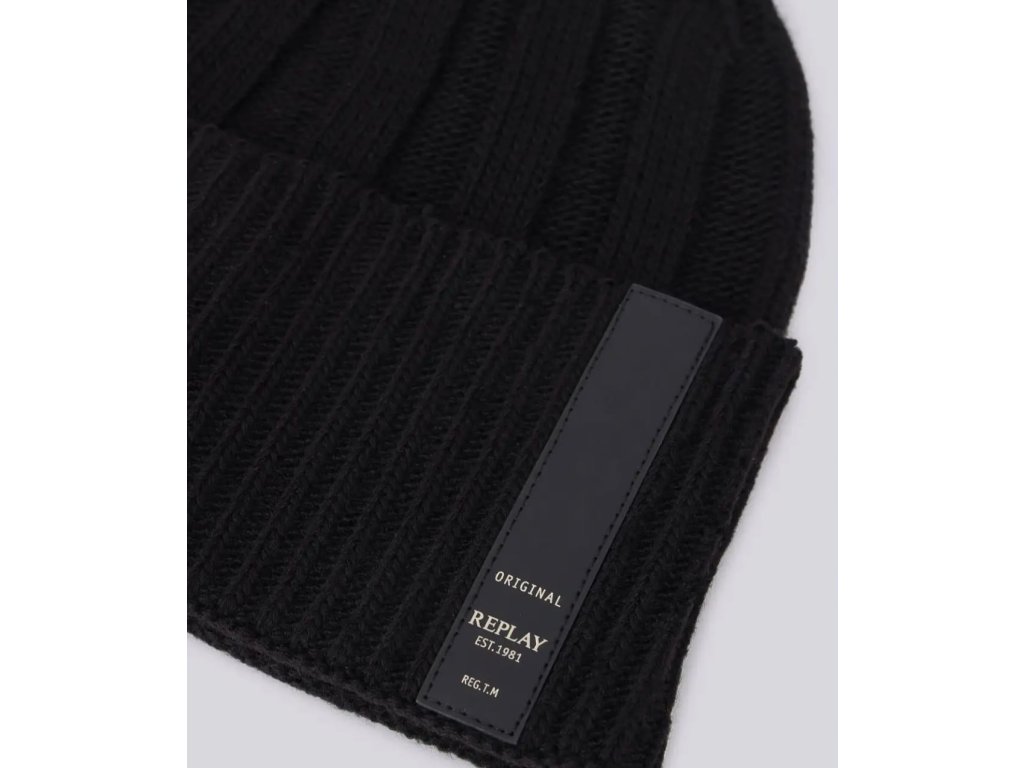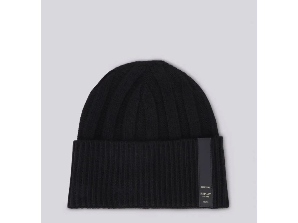 Detaily: klasická čepice s lemem, na lemu čepice je šedé logo REPLAY