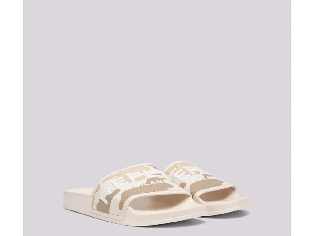 Detaily: béžové, kamuflážové pantofle REPLAY, vrchní páska je v designovém, kamuflážovém provedení s bílým logem REPLAY, pantofle jsou velmi lehké a pohodlné