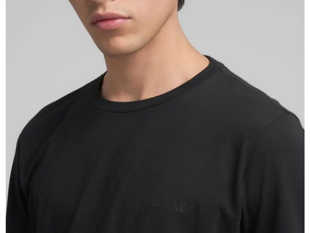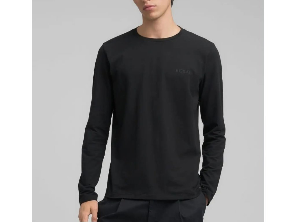Detaily: pánské triko s dlouhým rukávem, na hrudi je černé, silikonové logo REPLAY, na levém boku je černý label s bílým logem REPLAY, velmi příjemný materiál