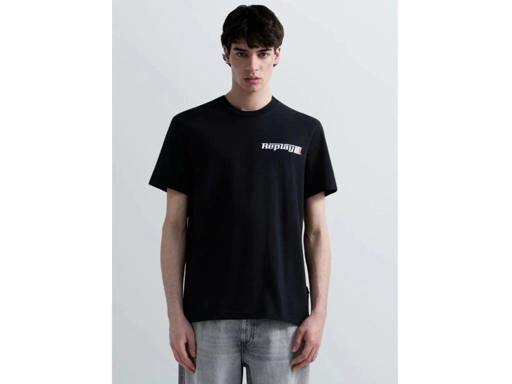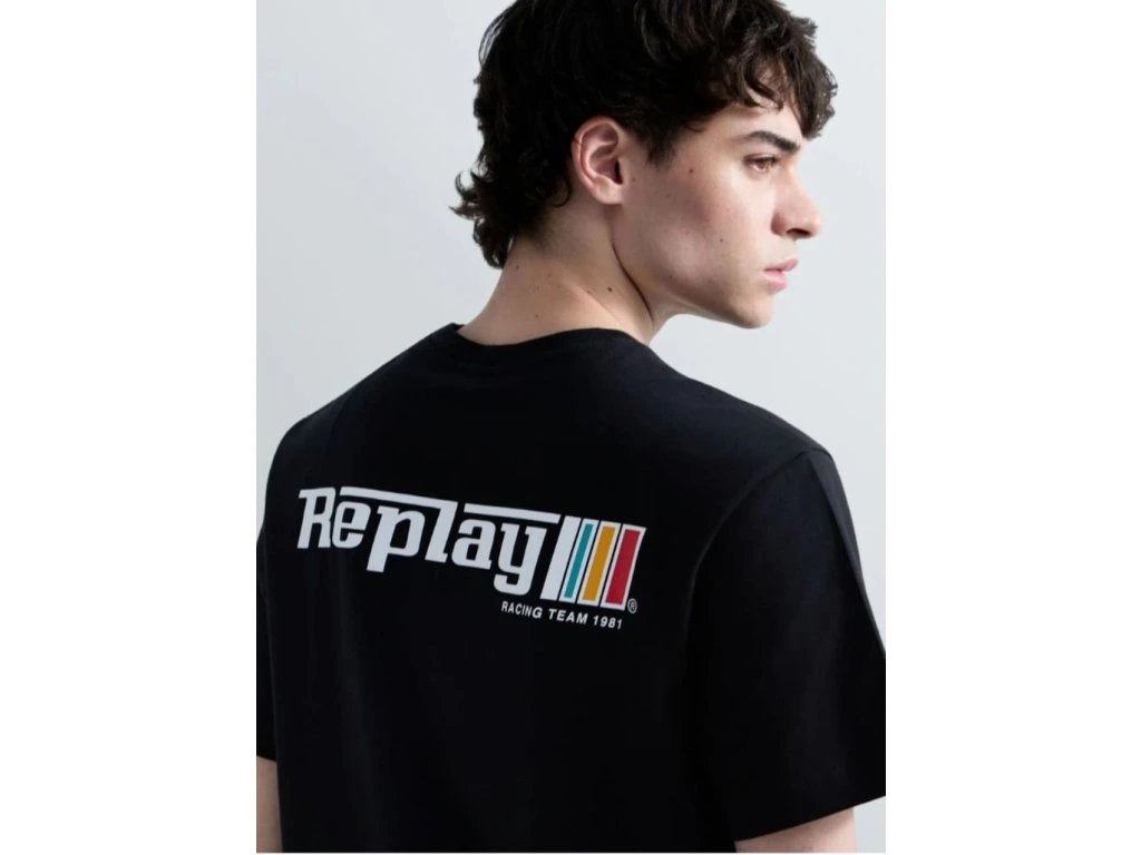 Detail: na hrudi je designové, bílé logo REPLAY, na zádech je velké, bílé designové logo REPLAY RACING TEAM, velmi příjemný materiál