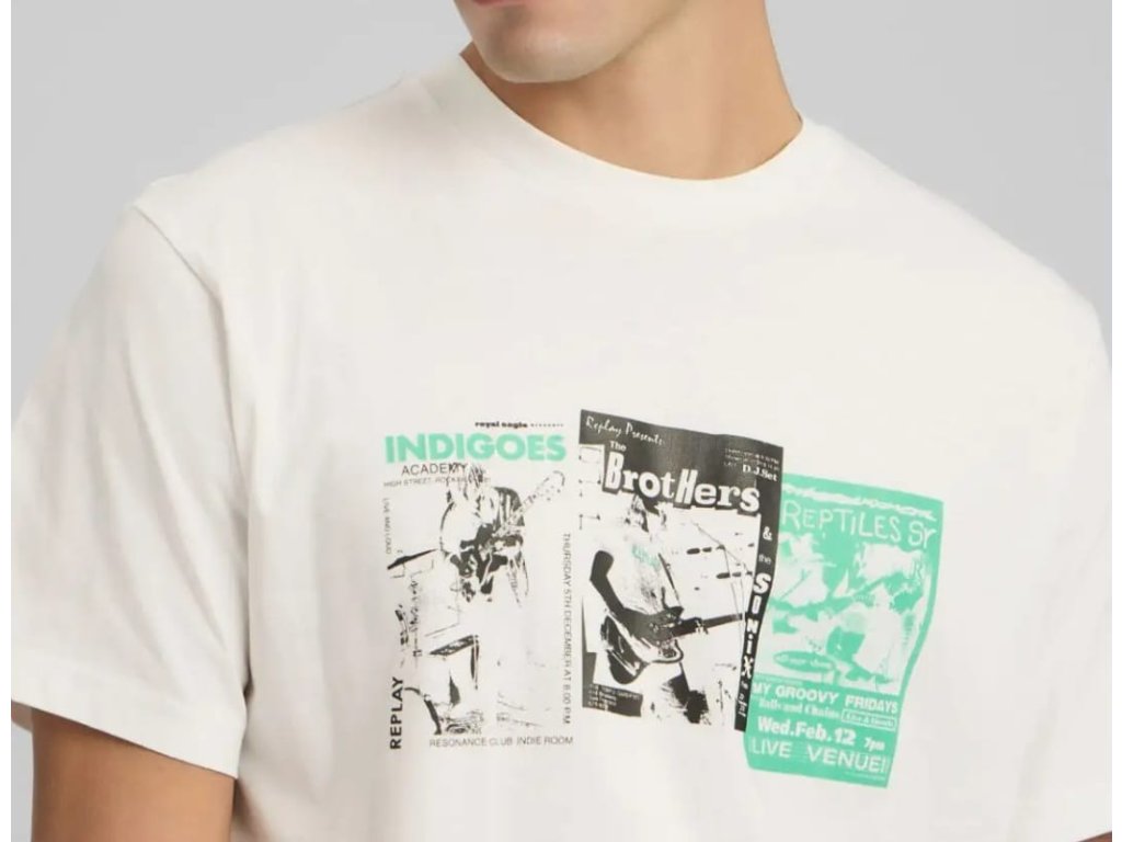 Detail: na hrudi je designový potisk s bílým logem REPLAY, na levém rukávu je bílý label s červeným erbem pro logo REPLAY, velmi příjemný materiál