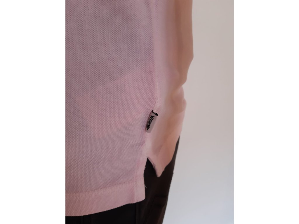 Detaily: klasická polokošile s límečkem a krátkým rukávem, zapínání na dva růžové knoflíky s logem WRANGLER, na spodním okraji je bílý label černým logem WRANGLER